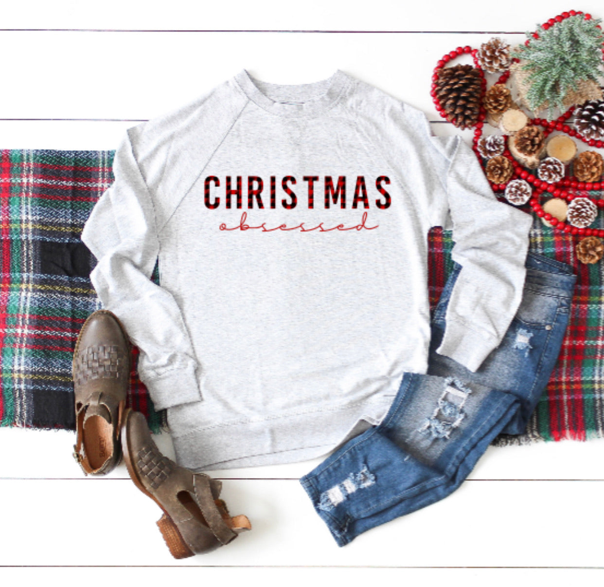 Christmas Obsessed buffalo raglan print